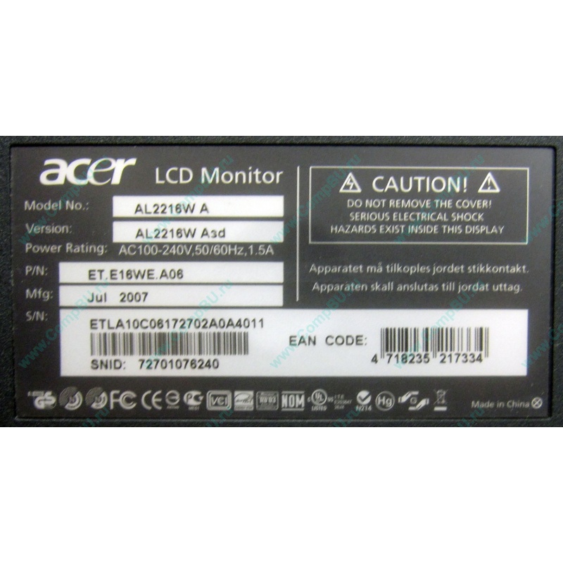 Широкоформатный монитор 22" Acer AL2216W 1680x1050 (16:10).